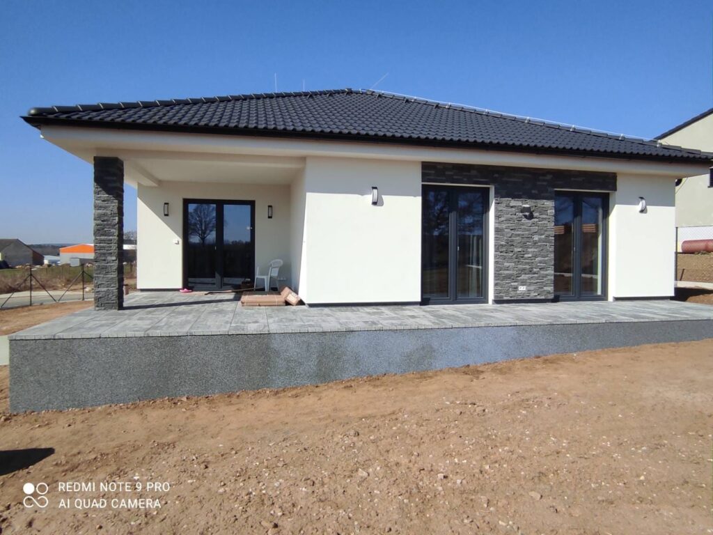 V ceně je zahrnuto vypracování projektové dokumentace, vyřízení stavebního povolení, vybudování základové desky, podlahového vytápění, a další.